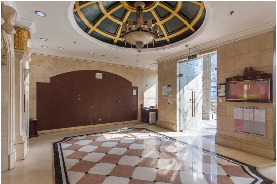 公共区域精装修交付标准:壁纸墙面、办公地毯、石膏板吊顶、电梯前厅地面石材精装修、大堂精装修